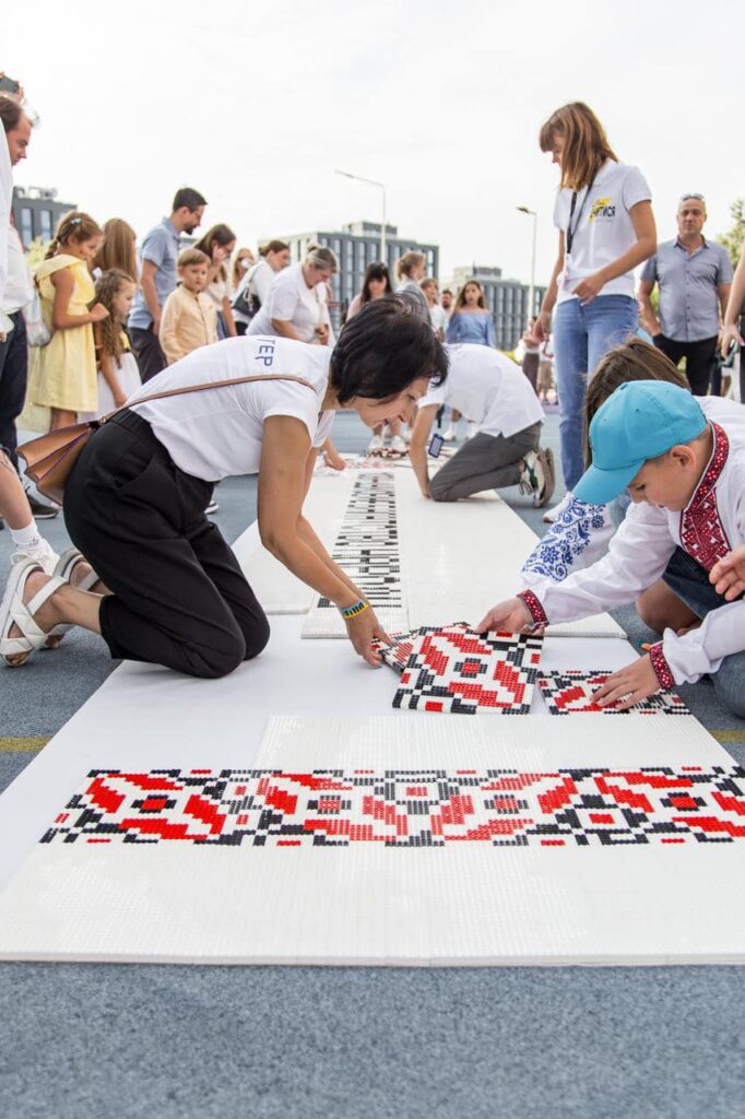 Розмір рушника з написом: «Мова – духовне багатство народу» становить 6,6 на 1,2 метра, на нього пішло 15 332 кубиків конструктора. Близько 400 осіб – учні, батьки та вчителі, які долучилися до цього унікального проєкту, що символізує єдність та спільну роботу задля підтримки та розвитку української мови, складали його протягом години в перший навчальний день року.