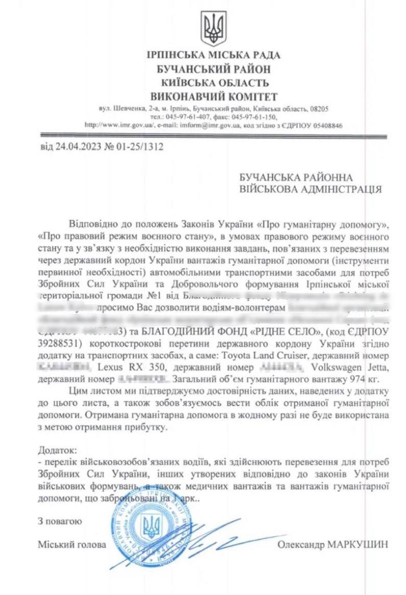 Мера Ірпеня Олександра Маркушина підозрюють в організації незаконного переправлення через кордон осіб, які так і не повернулися до України. За даними слідства, Маркушин використав своє службове становище, підписавши подання, що дозволяло шістьом ухилянтам покинути країну. Серед них виявився його кум – Сергій Росстальний, головний підрядник із відбудови міста.