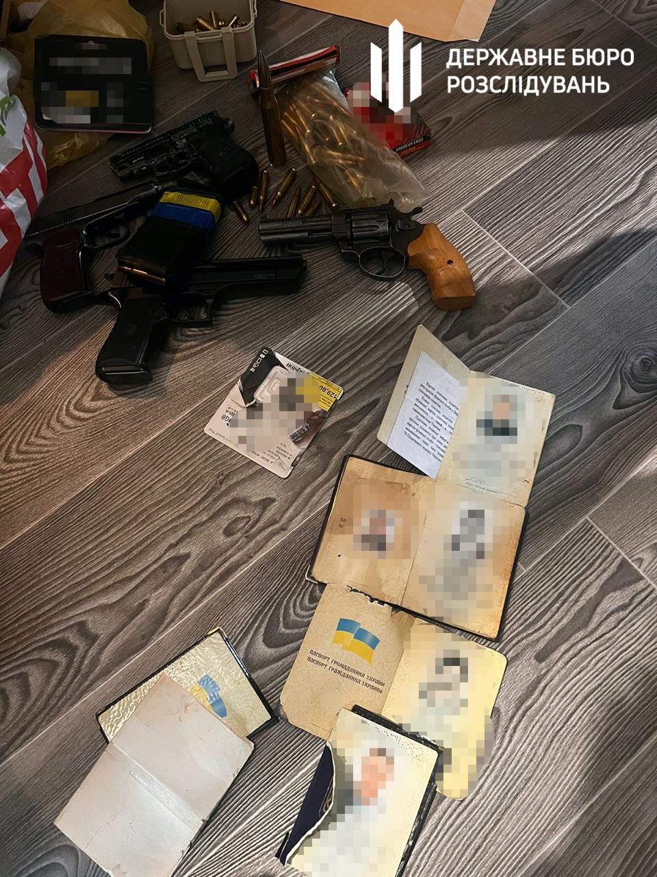 Під час обшуків у домі підозрюваного виявили викрадені документи, банківські картки, телефони, а також бойові припаси різного калібру та три одиниці незареєстрованої вогнепальної зброї.