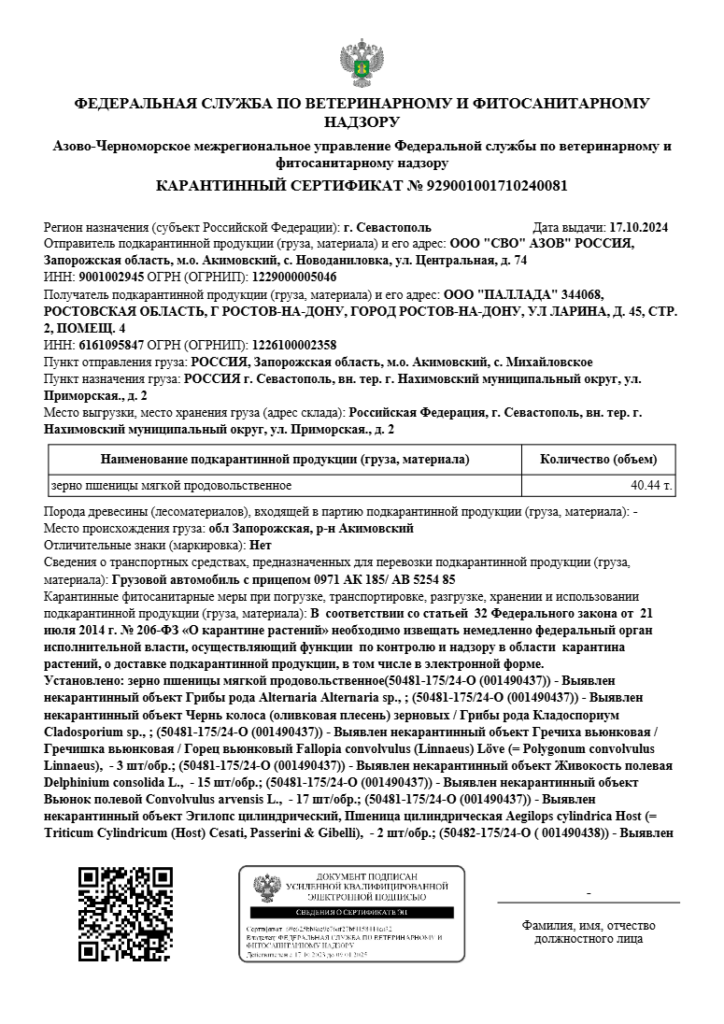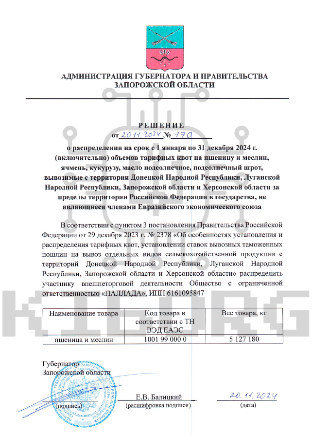 Компанія «Паллада», заснована у 2022 році, належить російському бізнесмену Сергію Кузнєцову. Вона отримувала експортні дозволи від окупаційної влади на вивезення пшениці, ячменю та інших зернових культур із захоплених територій України.