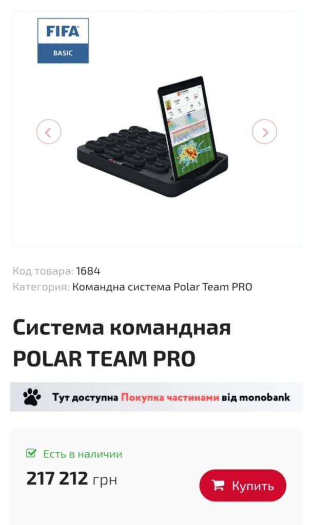 Однією з останніх закупівель стала система моніторингу фізичного стану спортсменів Polar Team Pro. За документами, підписаними між держустановою «Укрспортзабезпечення» та вже згаданим постачальником, державі продали цю систему за 342 903 грн, що майже на 60% вище від відкрито доступної ринкової ціни.