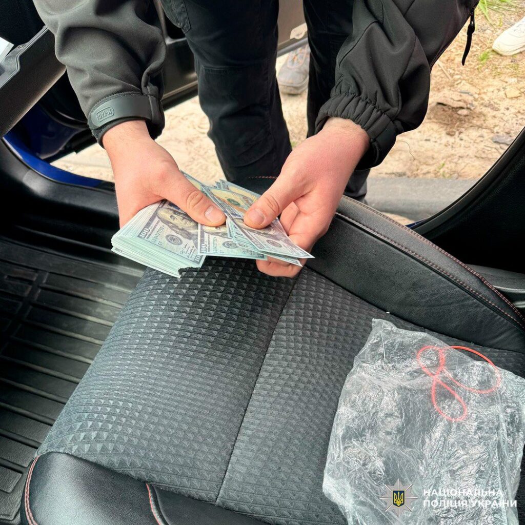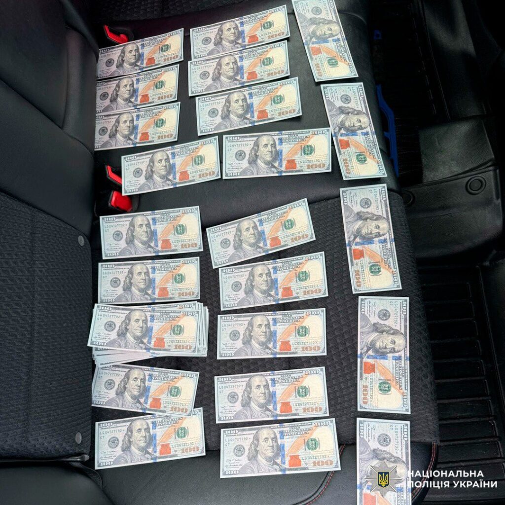 Під час обшуків у автомобілі Toyota затриманого та за його місцем проживання поліцейські вилучили готівку, документи, а також речові докази, що можуть свідчити про налагоджену схему.