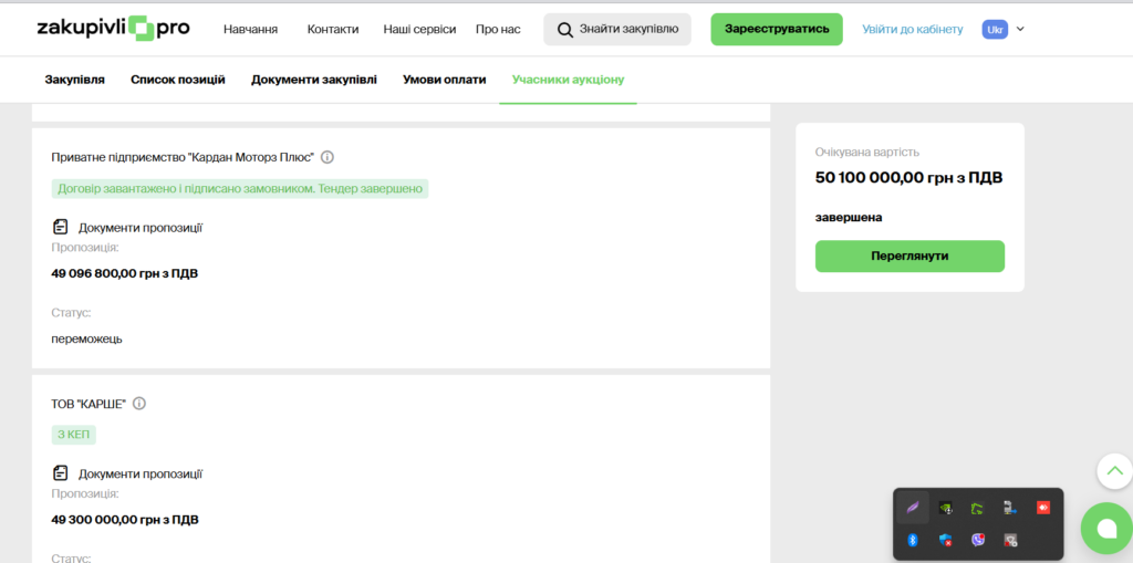 Усе через тендер на 49,09 млн грн, оголошений 7 травня 2025 року. Договір планують підписати з маловідомим приватним підприємством «Кардан Моторз Плюс» — фірмою, яка дотепер спеціалізувалась на торгівлі автозапчастинами, а її статутний капітал становить всього 1 тисячу гривень.