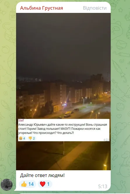 Хоча влада запевняє у відсутності загрози, місцеві жителі скаржаться на сильний сморід і поширення диму, що свідчить про масштабність пошкоджень. Деякі мешканці підтверджують, що чули вибухи, бачили пожежу й вимагали пояснень від влади.