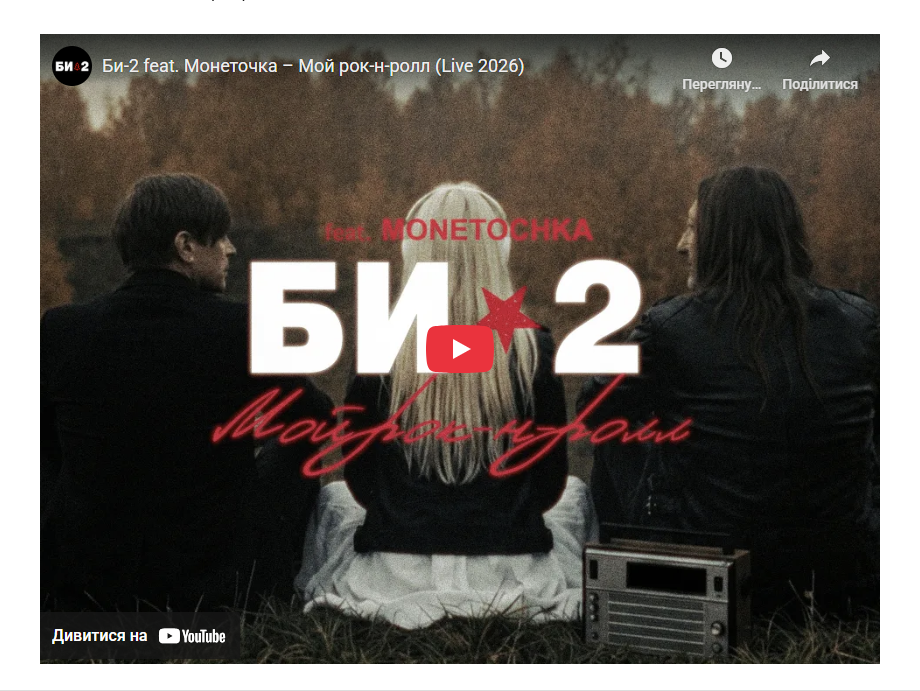 Російський рок-гурт Бі-2, який після початку повномасштабної війни відкрито засудив агресію росії проти України, презентував оновлену версію своєї відомої композиції «Мой рок-н-ролл». Перезапис пісні став не лише музичним оновленням. Це публічний жест — цього разу трек звучить без участі співачки Юлія Чичеріна, яка підтримує політику кремля та війну проти України.