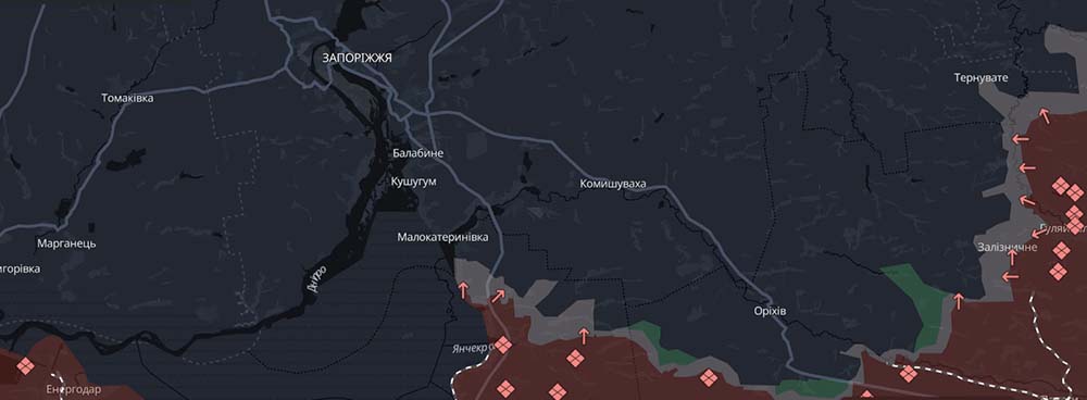 Водночас диверсійні групи противника намагаються інфільтруватися ближче до українських позицій, зокрема в районі Новоданилівки, яка розташована приблизно за 6 км від Оріхова. Проте це не змінює загальної картини — бої в Оріхові наразі не ведуться.