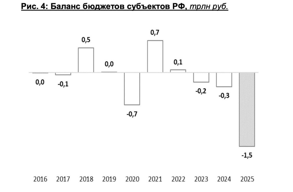 Дефіцит бюджетів регіонів РФ у 2025 році досяг рекордного рівня — понад 1,5 трлн рублів. Дефіцит бюджетів регіонів рф зріс у кілька разів порівняно з попередніми роками, що сигналізує про поглиблення фінансових проблем на місцях та посилення дисбалансу між доходами і витратами.