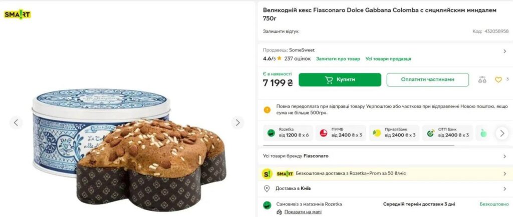 Окрім найдорожчої паски, на ринку представлені й інші преміальні варіанти. Їхня ціна значно нижча, але все одно перевищує звичний рівень для святкової випічки.