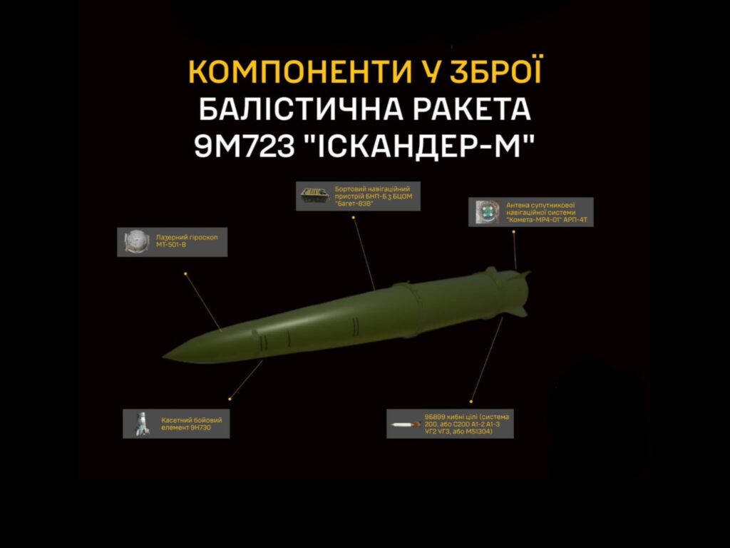 Головне управління розвідки Міністерства оборони України опублікувало детальну будову, склад та список підприємств виробничої кооперації російських балістичних ракет 9М723 комплексу “Іскандер-М”.