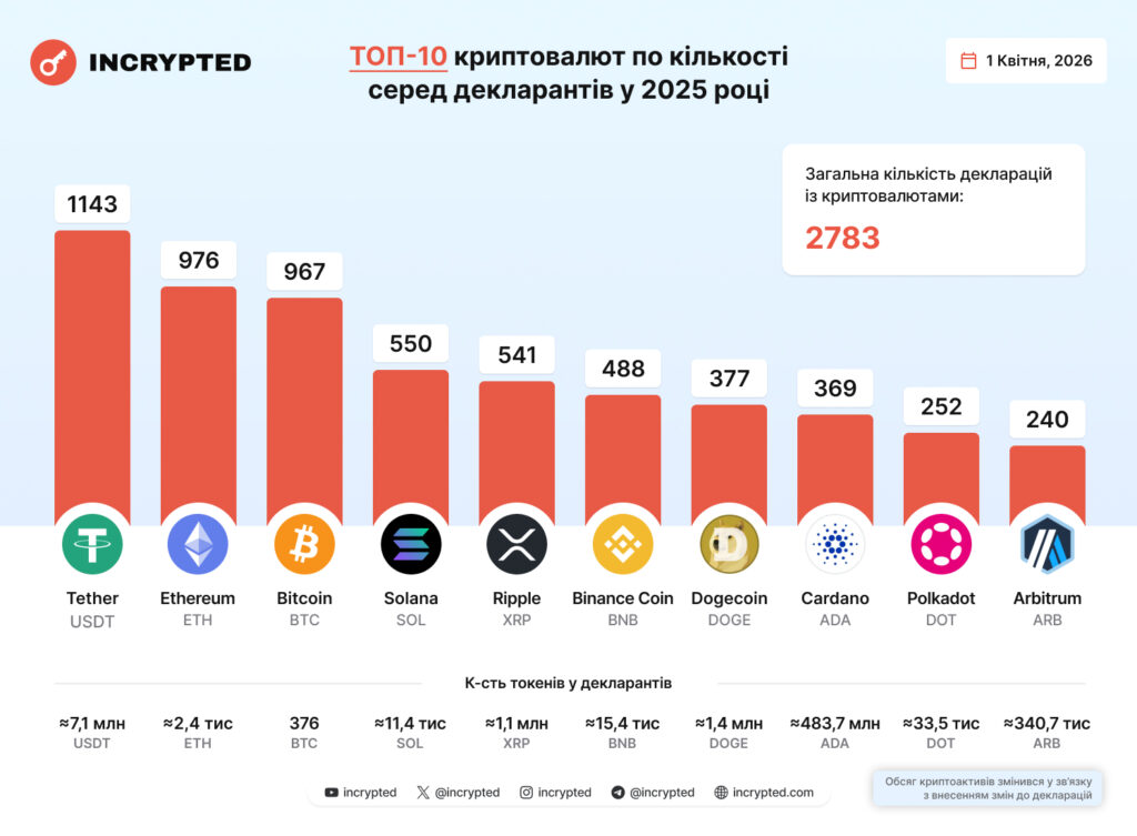Сам Incrypted після цього оновив свій матеріал і вказав, що після виходу публікації Данилишин подав виправлену декларацію, замінивши 4716 ETH на 4716 USDT. Отже, історія вже вийшла за межі просто рейтингу чиновників за криптоактивами й перетворилася на питання достовірності даних у декларації.