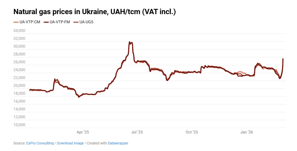 В Україні ціни на природний газ з початку тижня зросли приблизно на 20% і досягли 27 800 грн за тисячу кубометрів з ПДВ. Це найвищий рівень на українському ринку з червня 2025 року.