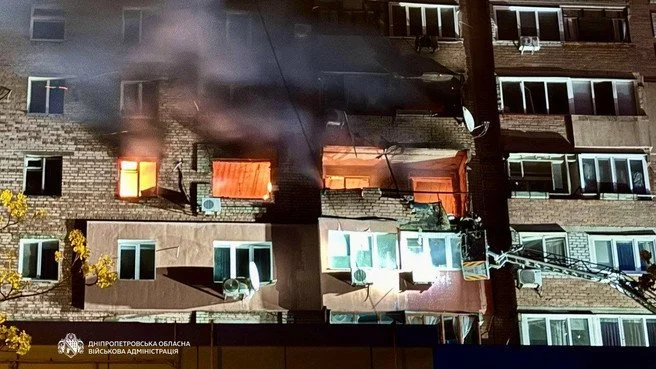 У Дніпрі росіяни вдарили по 13-поверхівці, через що спалахнули автомобілі та магазин. Крім того, пошкоджено адмінбудівлю та приміщення, яке не використовувалося.