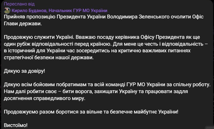 Судячи з подальшого повідомлення, Кирило Буданов погодився на пропозицію.